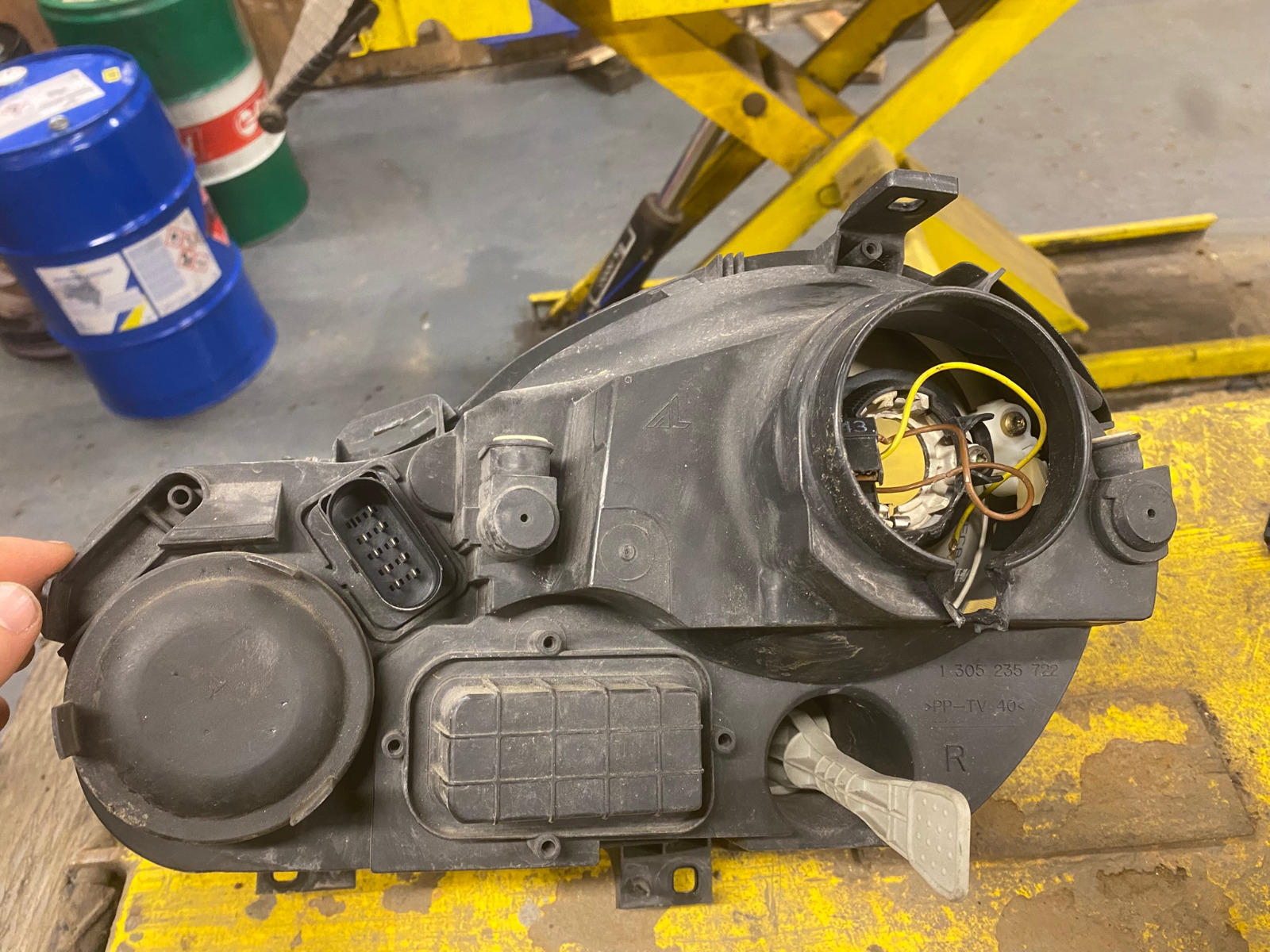 Lampenfassung, Kabel und Gehäuse hinten leicht beschädigt